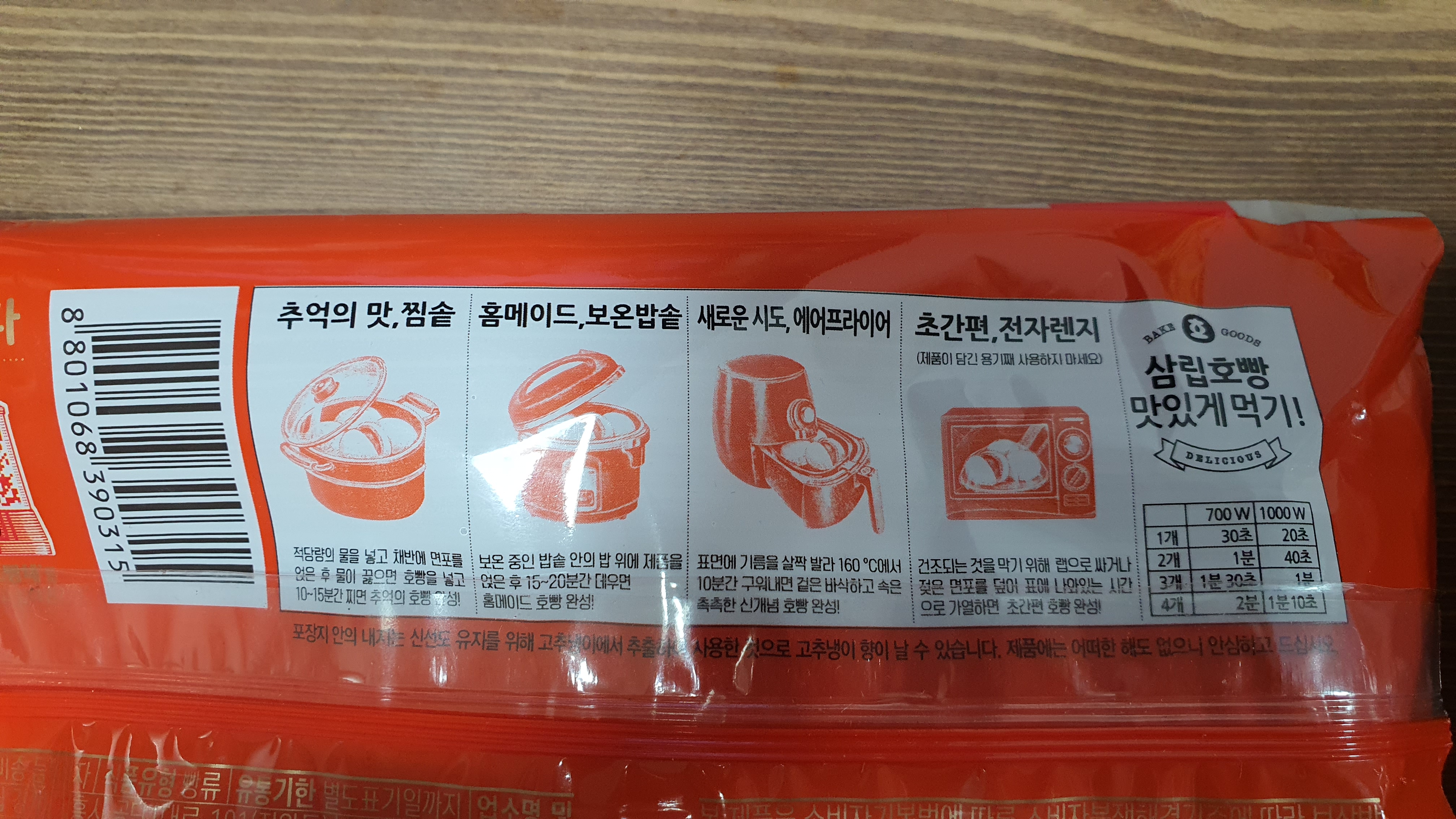삼립호빵 4개입 360g / 872 kcal (1개당 218 kcal)